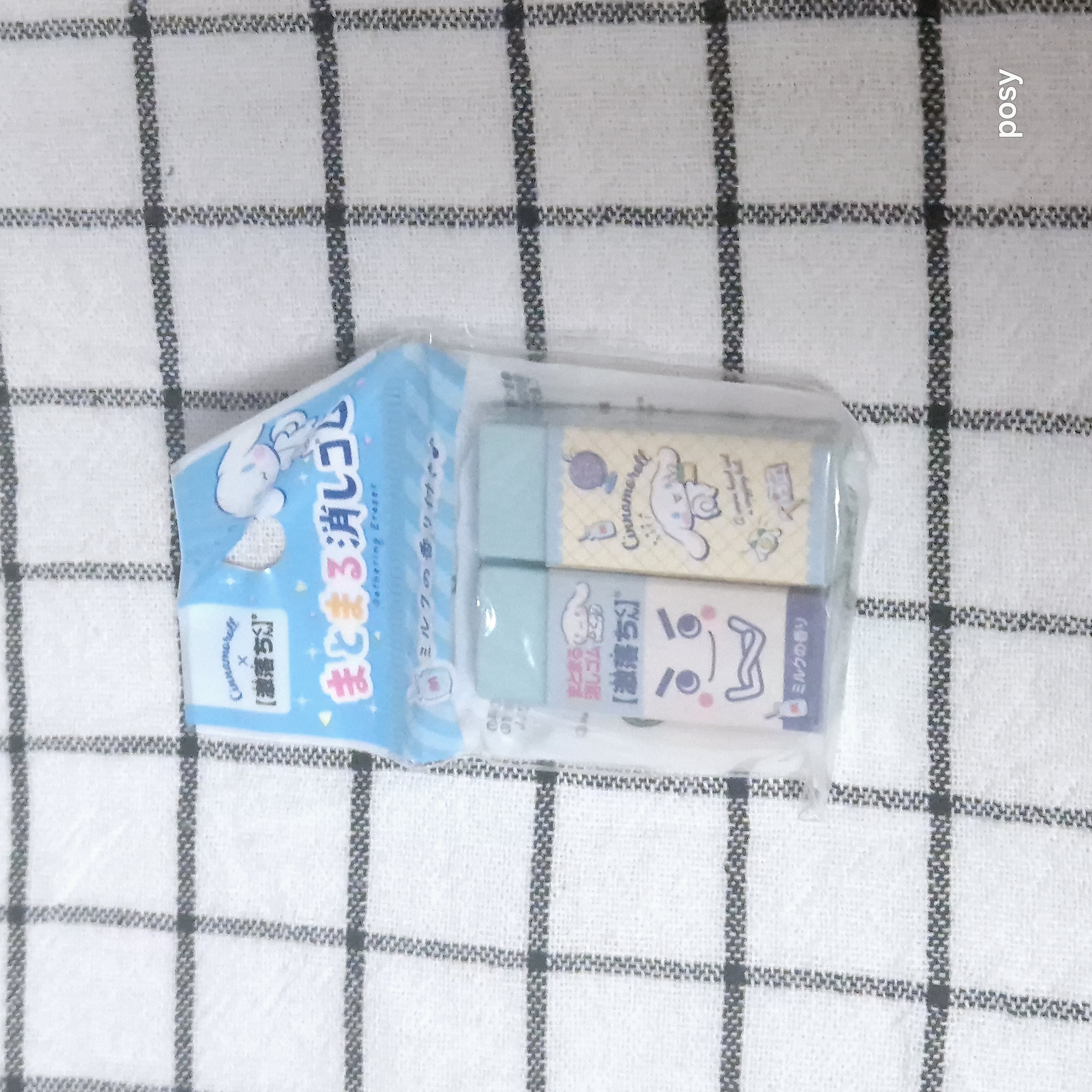 첫 번째입니다. 지우개인데요, 지우개 색상도 너무 예쁘고, 시나모롤 디자인이 콕 박혀 있어서 이거를 실사용할 것 같지는 않지만.. 그래도 상당히 예쁘더라고요. 여러분은 이런 예쁜 지우개가 있으면 사용 ㅎ사ㅣ는 편인가요. 아니면 아껴놨다고 사용하지 않는 편이신가요? 저는 반반이고 이렇게 2개가 있다? 그럼 하나는 쓸 것 같습니다. 왜냐면 이런 귀엽고 예쁜 상품을 실제로 사용하면서 오는 만족감도 있으니까요.