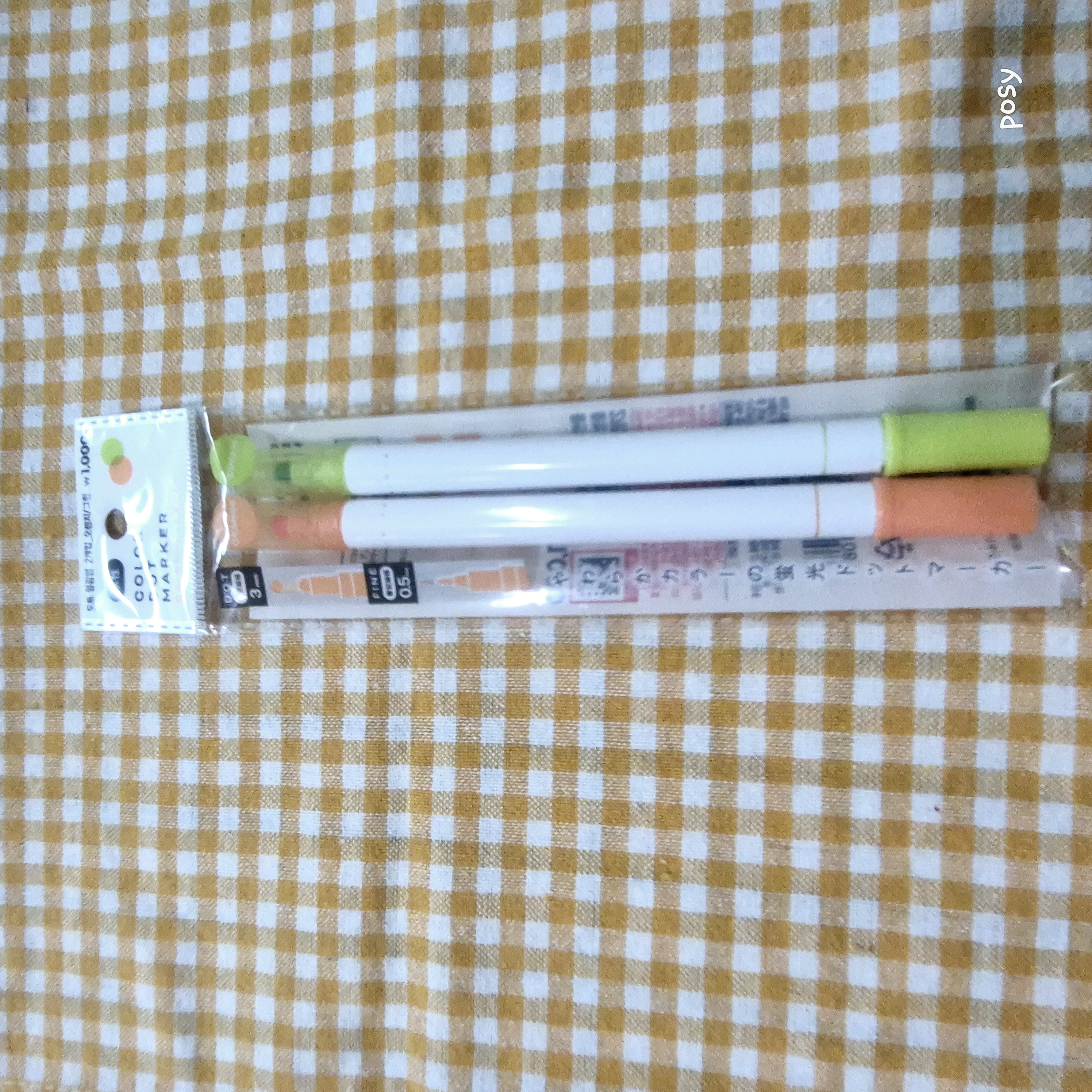 아무튼 실제로 발색을 해보면?! 이렇게 나옵니다. 역시 보자마자 이건 제가 생각한 주황색이구나 했어요. 되게 진한 귤안에 속이 아니라 귤 바깥 껍질 색감! 그리고 그린 색상은 진짜 나뭇잎사귀를 보면 보이는 색상인데, 초록색이 아니라 연두색에 가까운 색상이죠. 라임이라고 해야 하나.. 아무튼 그렇습니다. 제가 이거 정확히 무슨 색인지 말할 수 있는데, 혹시 여러분 my color 펜 아시나요? 양쪽에서 굵은 펜과 얇은 펜이 있는 형광펜인데, 거기에서 나오는 이거랑 진짜 비슷한 색상의 펜을 제가 고딩때 부터인가..? 중딩때 부터인가..? 엄청 오래오래 사용했던 펜이 있거든요? 아무튼 그거랑 색이 진짜 똑같아요. 근데 그거는 이제 이렇게까지 두껍게 나오는 펜은 아니거든요. 항상 조금 더 두꺼운 버전도 있으면 좋겠다 생각은 했는데 이걸 다이소에서 이렇게 발견하게 될 줄은 정말 상상도 못했습니다. 역시 포기하지 않으면 뜻하지 않은 곳에서 이렇게 발견하게 된다니까요?