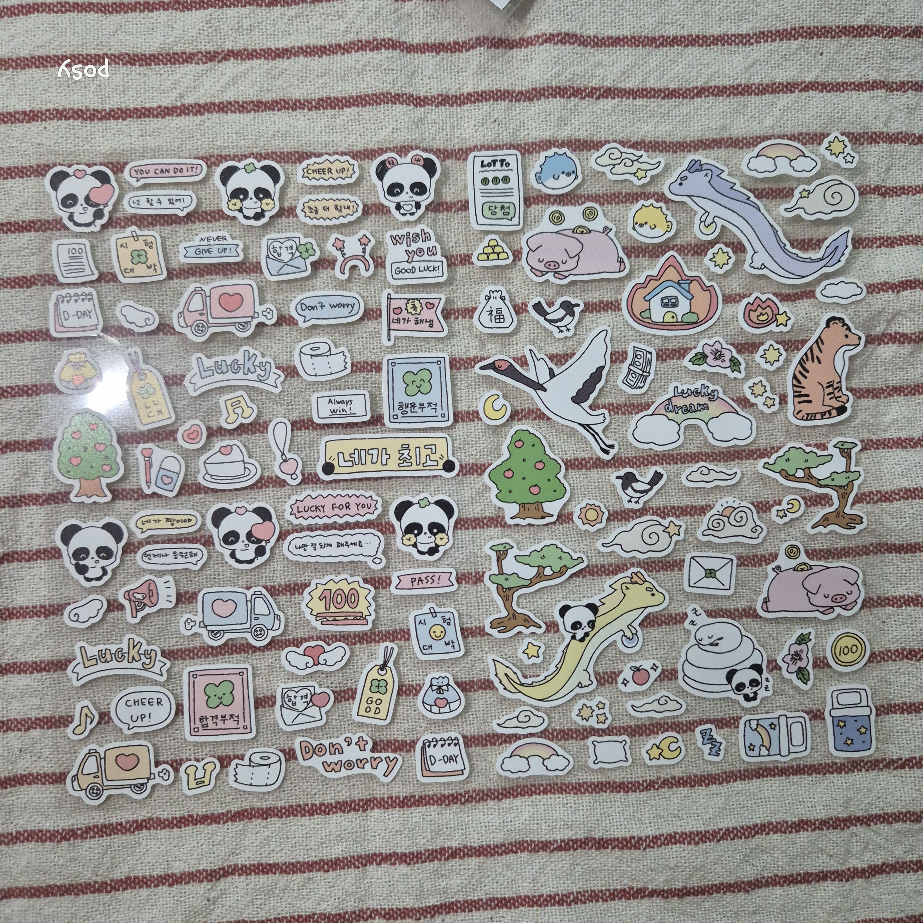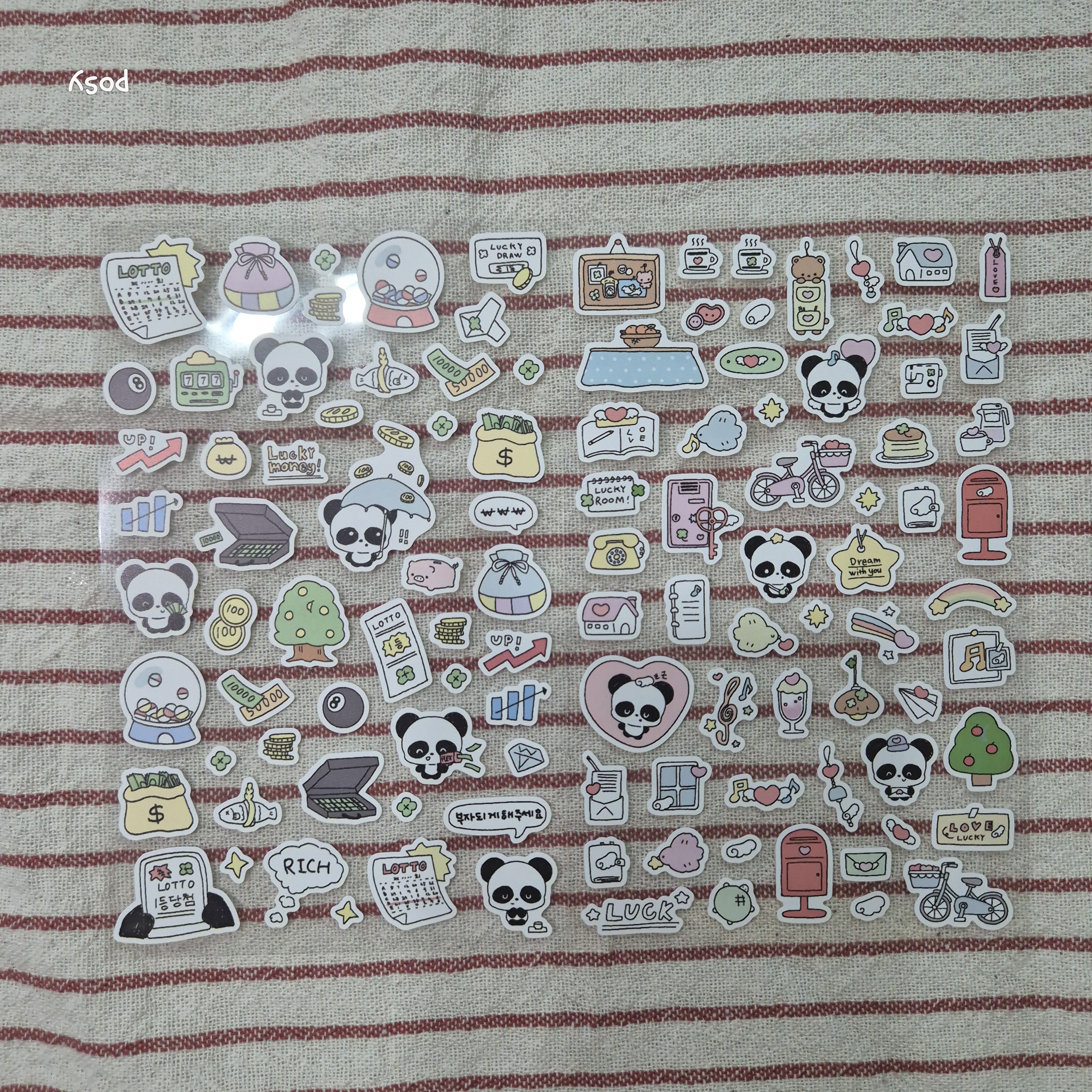 안녕하세요. posy입니다. 오늘은 꿈꾸는 판다는 아름답다.. 드림 판다를 가져왔습니다. 곰돌이 귀마냥 똥그란 귀를 가지고 있는 이 귀여운 캐릭터와 그에 어울리는 다양한 오브제들이 스티커 판에 들어가 있으며 캐릭터가 메인이라기보다는 그 외 다양한 물건들이 함께 들어가 있다 보니까 생각보다 더 잘 활용할 수 있더라고요.