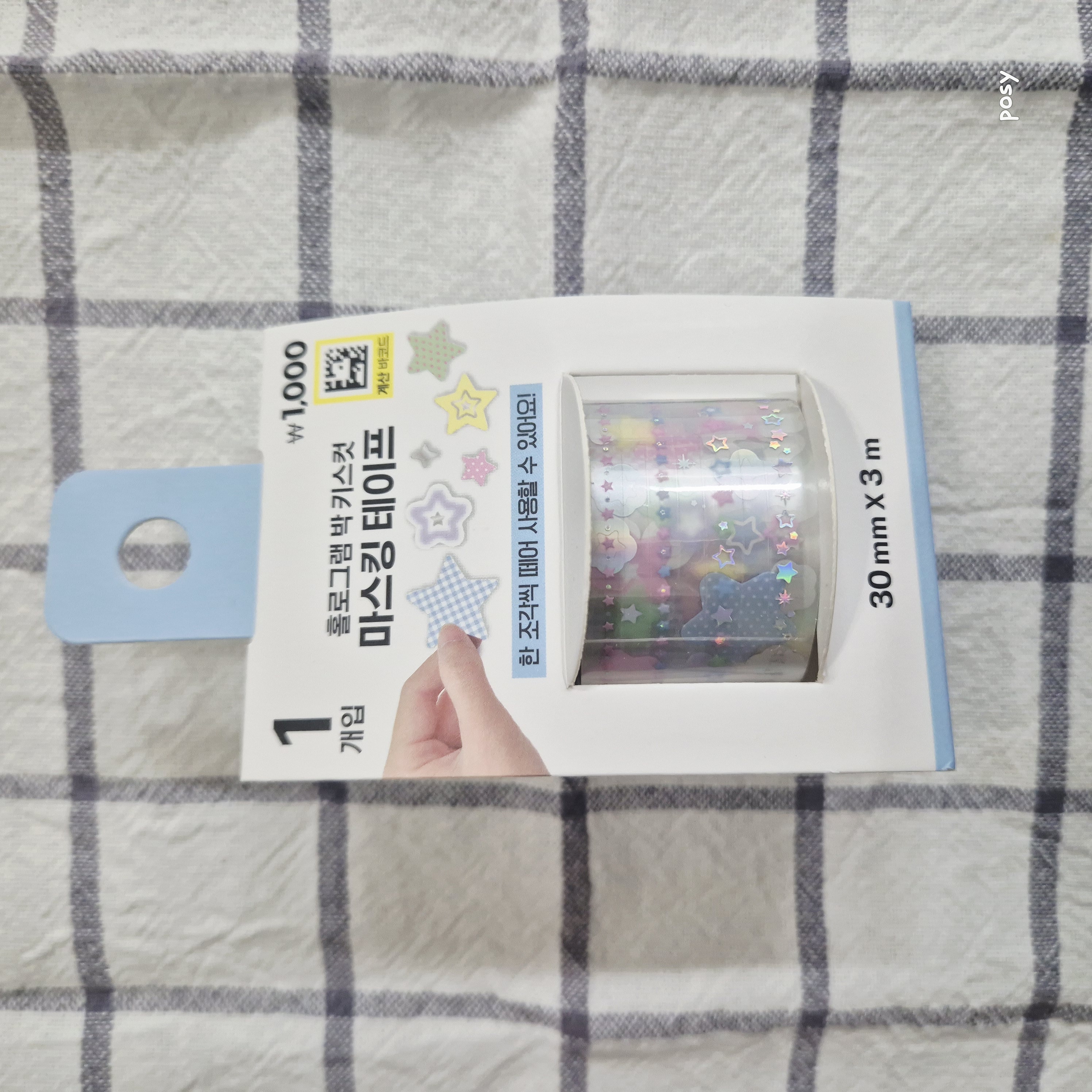 안녕하세요. posy입니다. 오늘은 은박 별 키 스컷 마스킹 테이프를 가져왔습니다. 각도에 따라 빛을 영롱하게 반사하여 굉장히 알록달록하게 사용하기 좋을 뿐만 아니라 저는 또 금박, 은박 중에 한 고르라고 하면 은박 파거든요. 그래서 그런지 아주 마음에 들더라고요.