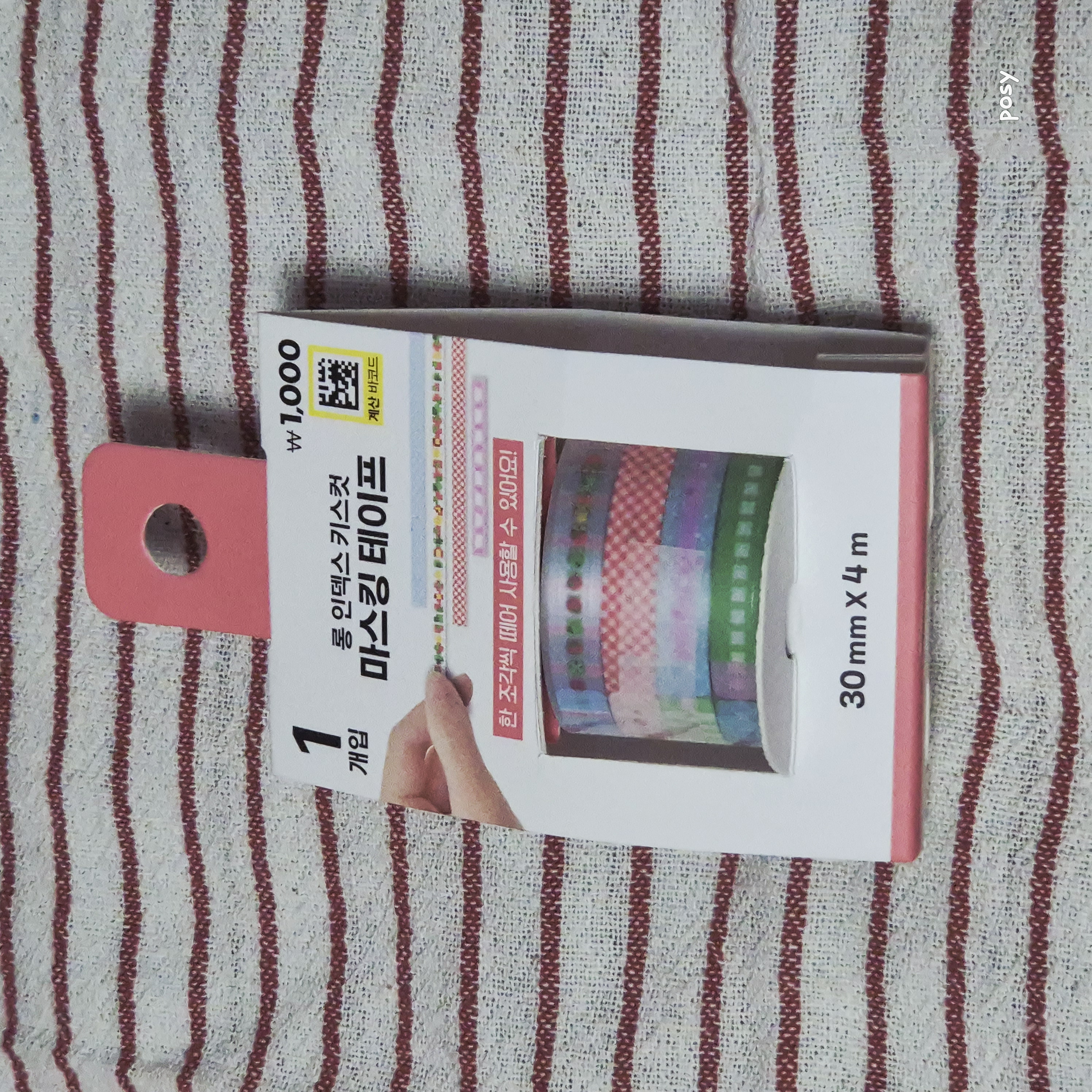 첫 번째입니다. 라인이 다채롭게 들어가 있어서 마치 수십 개의 마스킹 테이프를 가지고 있는 것과 거의 비슷한 효과를 낼 수 있을 것 같은 마스킹 테이프입니다. 생각보다 라인 디자인의 종류가 상당히 다양해서 정말 활용도가 좋을 것 같더라고요.