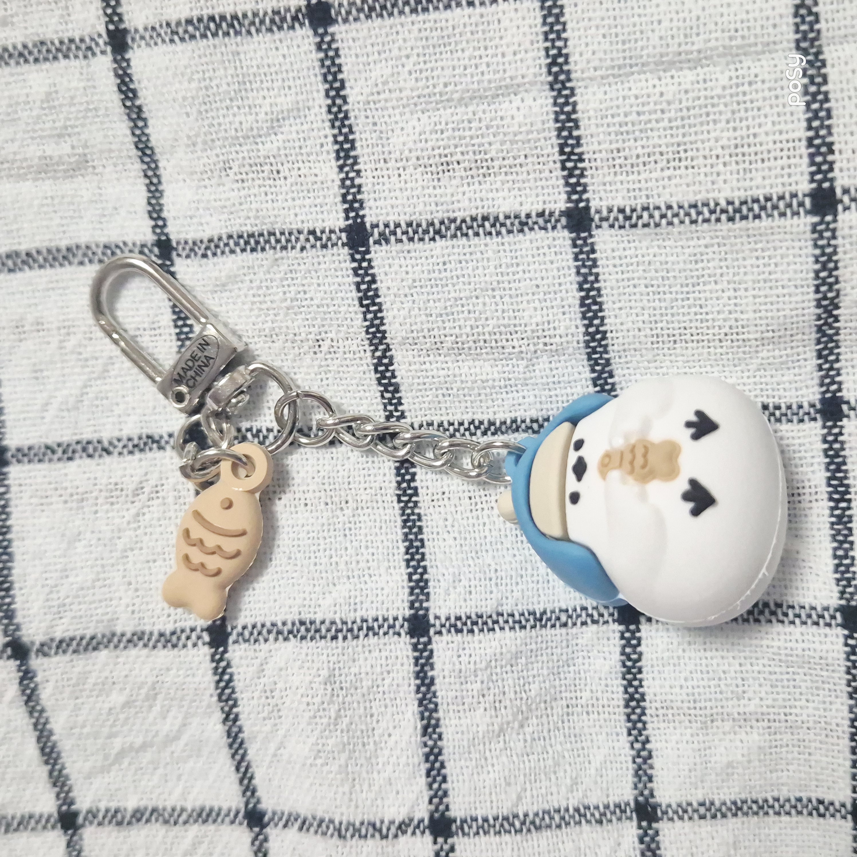 일단 디자인만 보면 솔직히 말랑말랑할 것 같기도 하고 그런 느낌이잖아요.. 그런데 그런 거 전혀 없이 완전 단단한 그런 아이입니다. 진짜로 박으면 깡- 하고 소리 날 정도로 굉장히 단단한.. 그리고 새 자체가 굉장히 새 하얀색으로 이루어져 있기 때문에 솔직히 조금만 때 타거나 하면 바로 더러워질 수 있다는.. 그런 단점이 있지만 그 모든 걸 이겨낼 정도로 굉장히 귀엽잖아요.. 그거면 되는 것이 아닐까 싶습니다. 그리고 포인트처럼 옆에 붕어빵이 달려 있습니다. 솔직히 내용물이 무엇일지는 보이지도 않고 상상도 안되지만.. 딱 보시면 팥붕 아닐까요? 아무래도 근본이니까.. 그리고 사실 진짜로 대박 귀여운 건 바로바로.. 이 새 발바닥..? 새 발가락..? 이거인 것 같습니다. 엄청나게 귀엽지 않나요.. 하... 그리고 약간 도톰하게 튀어나와 있는 부분이 있기 떄문에 더 입체감이 장난 아닙니다.