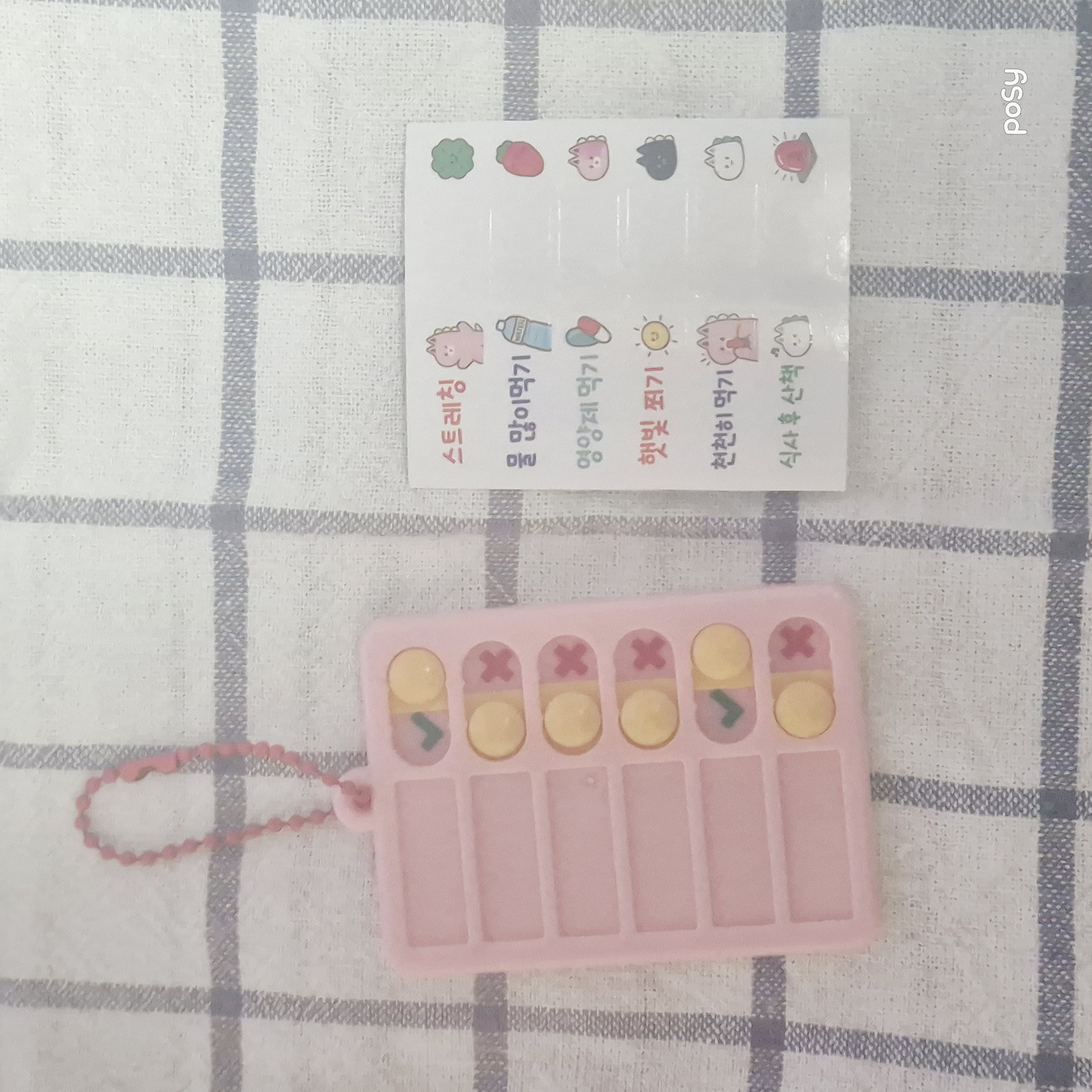 안녕하세요. posy입니다. 오늘은 사실 이 투 두 리스트 체크하는 거 큰 버전은 이미 있거든요. 일전에 용 신년 시리즈에서 샀었던 거 기억하시나요? 아무튼 그때 것도 너무너무 잘 쓰고 있지만 아무래도 큰 판때기..?로 구성되어 있어서 어디 가지고 나갈 수 있지는 않았고 그냥 집에서 쓰는 것만 됐는데 이거는 말 그대로 키 링의 형태이다 보니깐 여기저기 가지고 다니기 아주 편리하더라고요. 할 일을 다 끝낸 다음에 옆으로 쓰윽 밀어서 패스하면 되고, 예를 들어서 운동 가방이면 운동 관련된 물건 챙기는 거, 운동하는 거 등 체크리스트를 작성하여 걸어두면 되고, 자격증 가방이면 자격증 책이나 공부 분량 오늘 양을 다 했는지 등등을 적어둘 수도 있고 해서 좋더라고요. 예를 들어 토익 LC/RC, HSK 듣기/독해/쓰기 이런 식으로 분야를 나눠서 오늘 목표치를 다 했는지 가볍게 체크하기 딱 좋더라고요. 종류도 6가지라서 안성 맞춤입니다.
