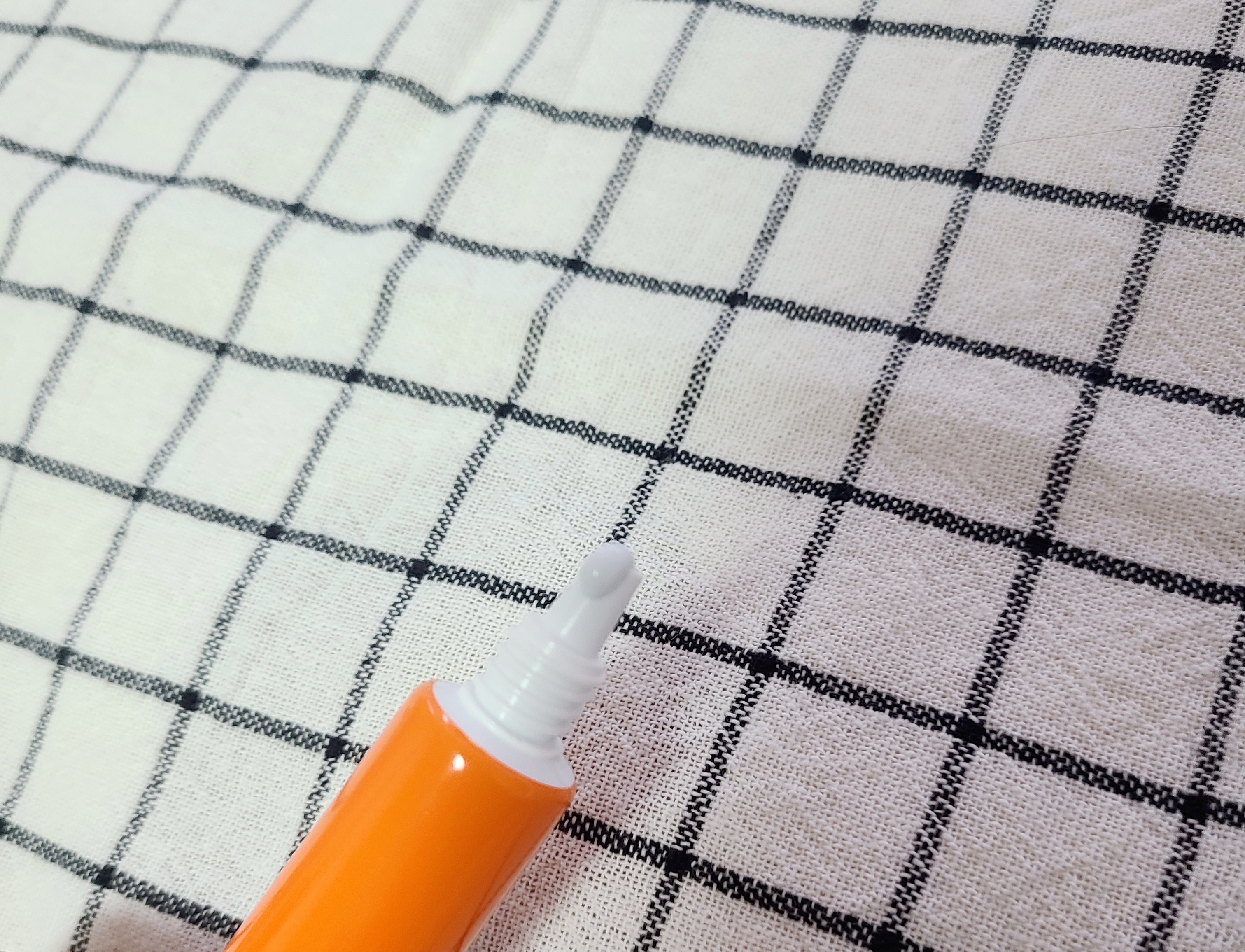통을 열면 이렇게 얇고 작은 통의 화장품이 하나 등장합니다. 작은 만큼 더 정밀하게 원하는 부위에 화장품을 짜낼 수 있습니다. 조준율이 나쁜(?) 저한테는 이런 거 상당히 사소하지만 중요한 부분이라고요. 꽤나 정밀하게 짤 수 있으며, 양 조절도 어렵지 않아서 사용에 굉장히 용이한 편이었습니다.