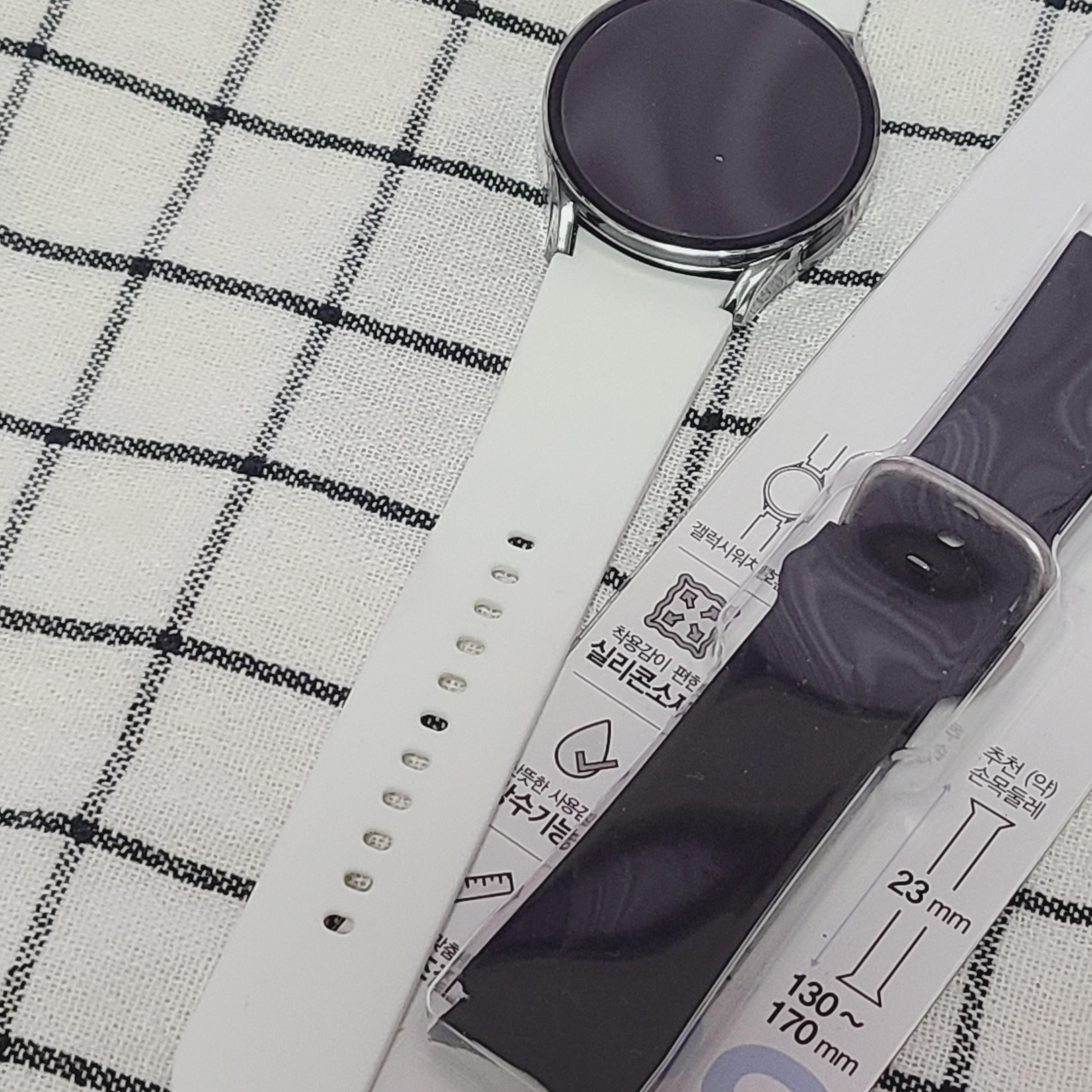 안녕하세요. posy입니다. 오늘은 실리콘 스트랩을 가져왔습니다. 이게 뭐냐고요? 바로 갤럭시 워치 스트랩입니다!!! 다이소에 핸드폰 용품하면 애플 쪽이 압도적으로 많은 편이잖아요. 그래서 이번 워치 스트랩이 나온다고 했을 때에도 사실 갤럭시는 뭐... 안 나오겠지.. 애플워치 스트랩 나오면 종류 구경이나 하고, 비슷한 재질과 모양의 갤럭시 워치 스트랩을 사야겠다.. 싶었습니다. 그런데? 나왔더라고요 갤럭시 워치 스트랩이! 비록 실리콘 스트랩 2종만 있었지만, 그래도 가장 많이 쓸만한 블랙과 화이트..! 개인적으로 그레이까지 나왔으면 더 좋았을 것 같기는 한데! 그래도 기본적인 거 잘 나온 것 같습니다.