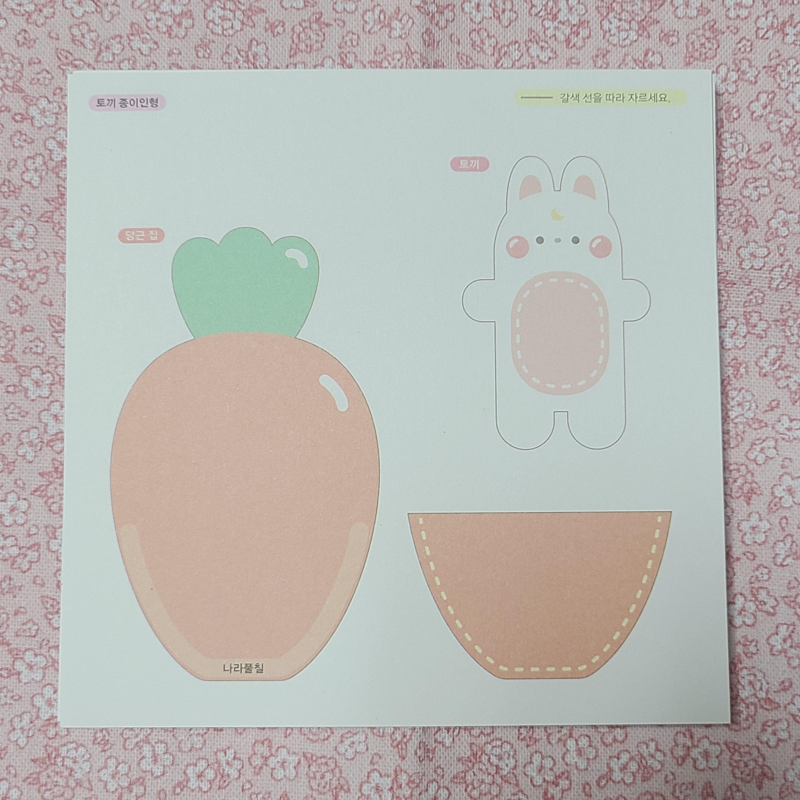 다섯 번째는 토끼 종이인형입니다. 그냥 간단하게 잘라서 당근 속에 토끼를 쏙- 넣어주면 되는 상당히 간단한 아이입니다. 이름이 애초에 당근 집이에요 ㅋㅋ 아무리 봐도 그냥 침대가 아닌가 싶은데,, 당근 집 하니까 그 어감이 조금 더 귀엽기는 한 것 같더라고요.