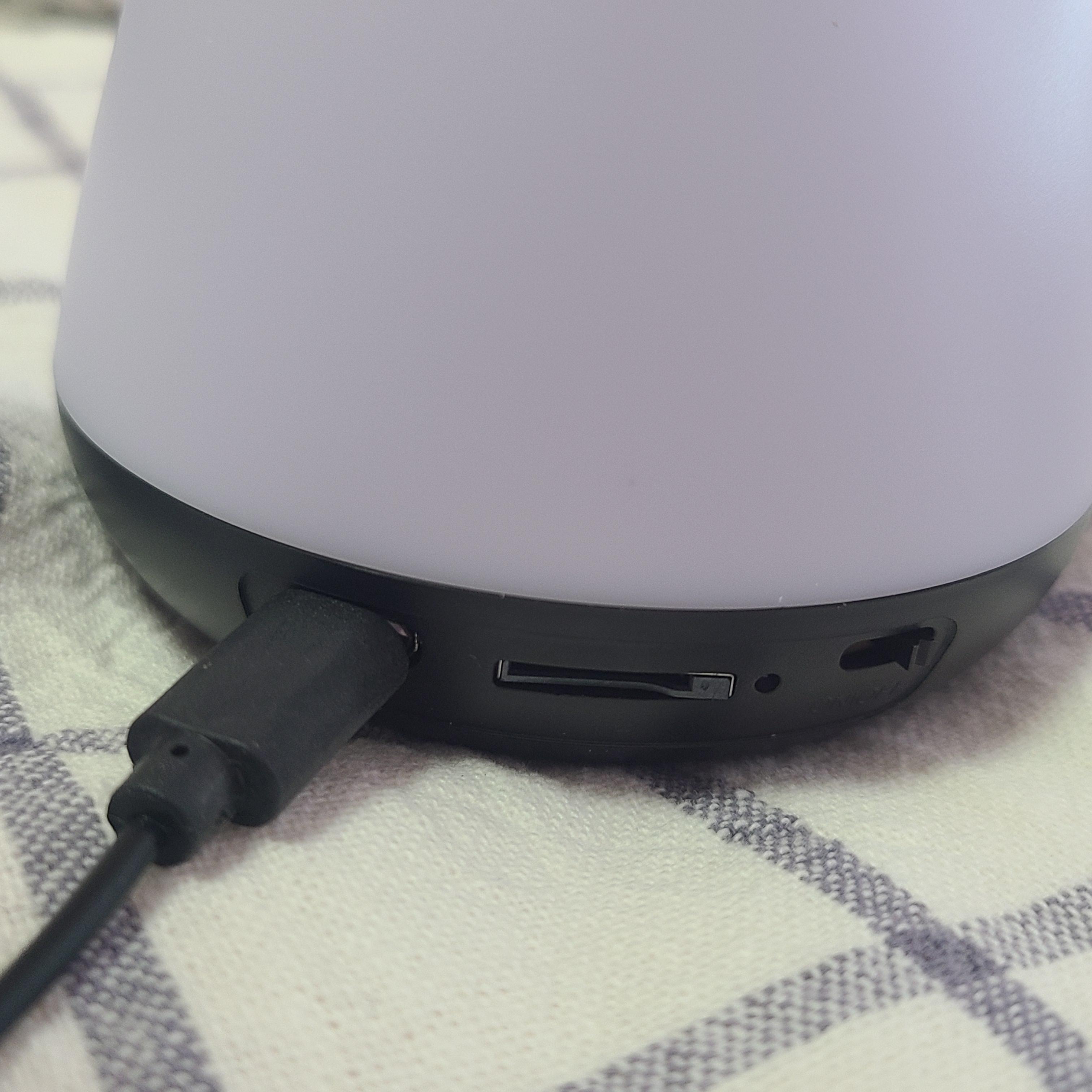 일단 여기 아래 보면 아까 포장지에 있던 것처럼 선이랑도 연결이 잘 되고 자세히 보면 Micro SD 넣을 수 있는 공간과 ON/OFF 할 수 있는 버튼이 작게 튀어나와 있습니다. 그럼 이제 바로 켜볼까요?