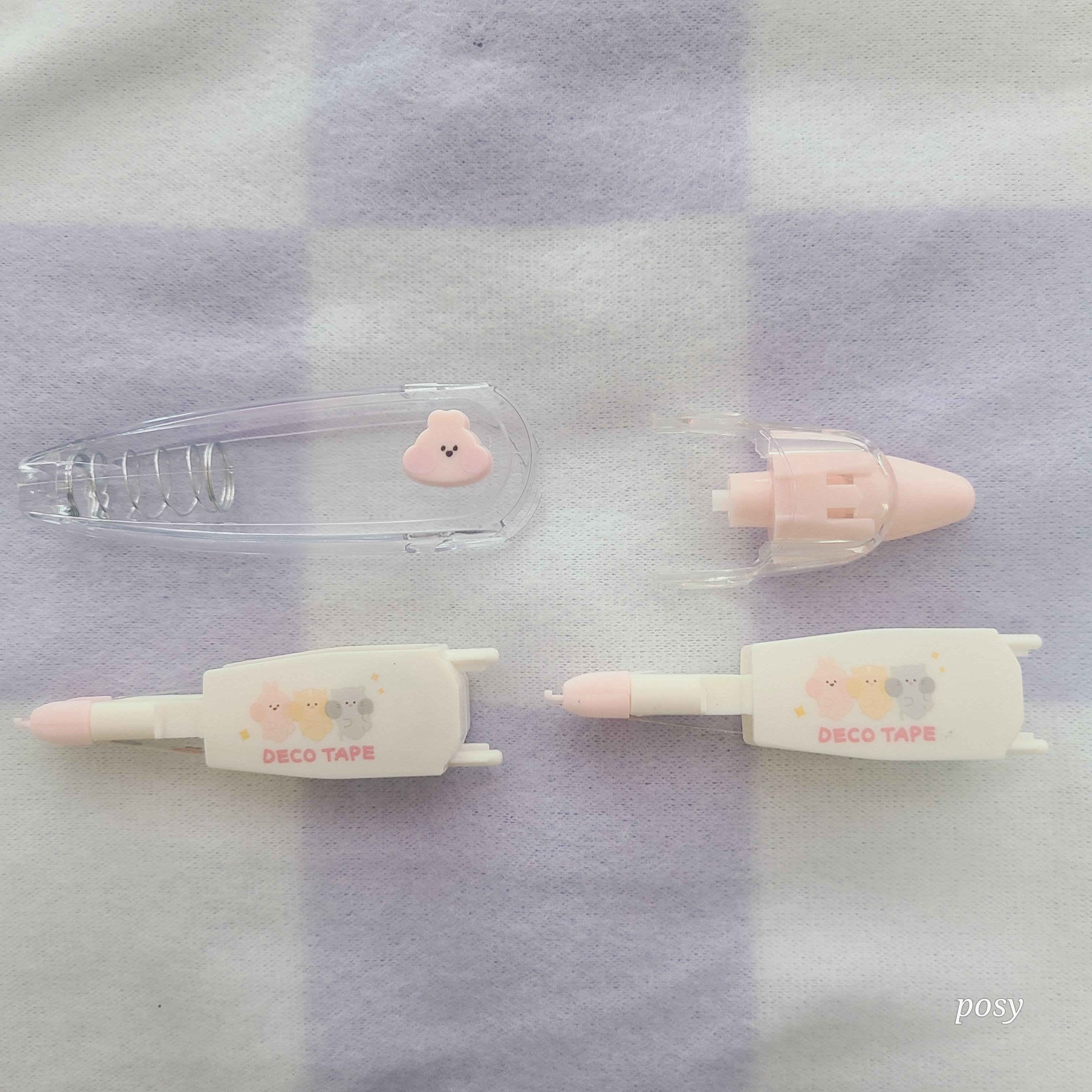 테이프를 기계까지 싹 다 분리를 하면 이런 식으로 다 빠지게 됩니다. 투명한 토끼 통도 너무 귀엽죠? 중간에 토끼 포인트가 굉장히 눈에 들어오고 귀엽습니다.그리고 리필할 수 있는 저 리필 심도 너무 귀엽게 생겼더라고요.. 심플한 디자인보다 이런 식으로 캐릭터가 들어가 있어니 훨씬 퀄리티가 높아 보이는 것 같았습니다. 개인적으로는 리필심만 더 뭔가 팔아줬다면 마음 놓고 더 편하게 쓸 수 있었을 텐데.. 하는 아쉬움이 약간 있기는 하지만서도.... 천 원이라는 가격을 생각하면 그럴 수 있지 싶더라고요. 이제 여기에 대체하여 넣을 수 있는 것을 찾아보면서 일단 기본 패키지에 구성되어 있는 아이들을 사용해 보아야겠습니다. 혹시 호환 가능 한 거 찾으신 분들은 언제든지 제보 주세요..!!