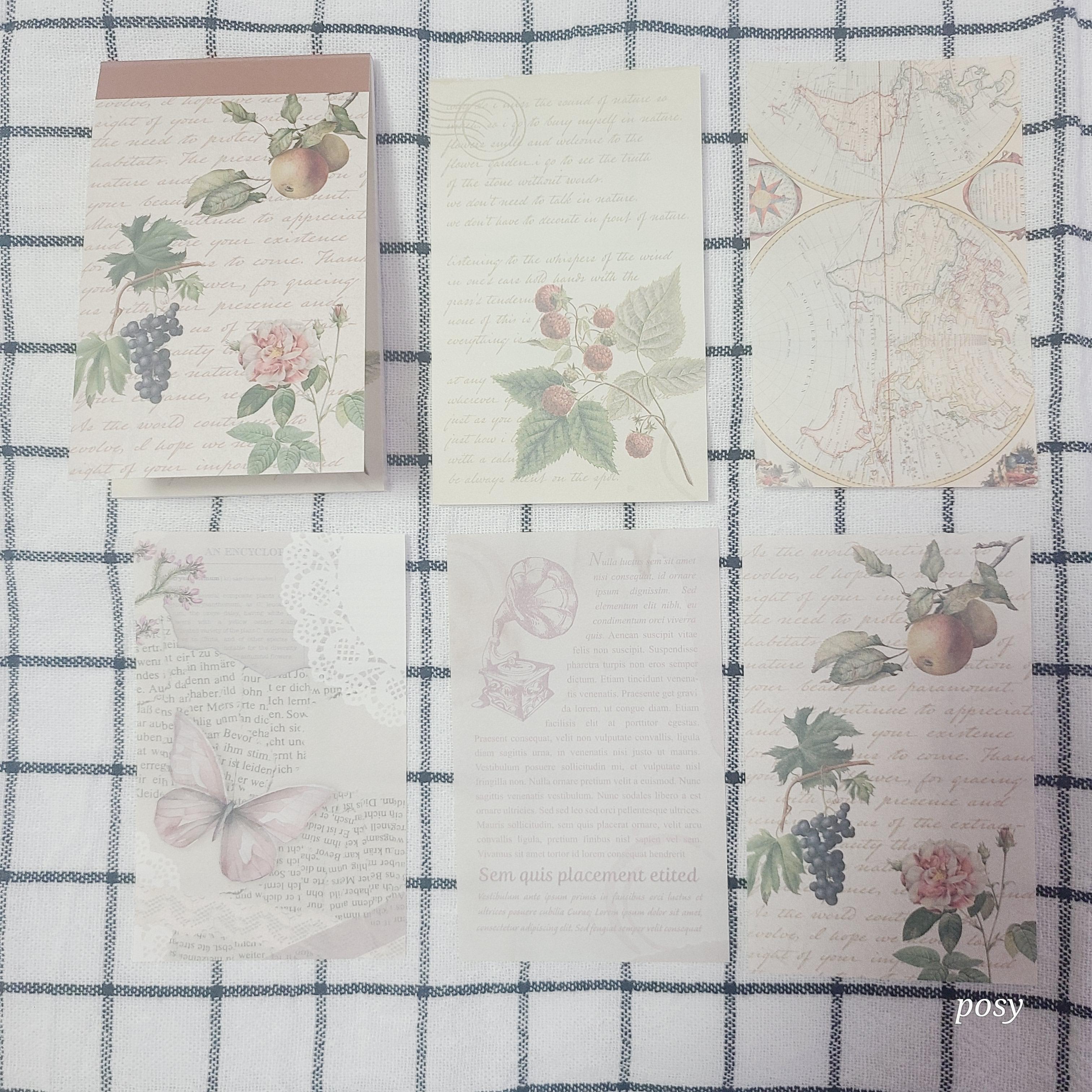 두 번째는 브라운입니다. 브라운은 꽃보다는 열매, 과실과 같은 느낌의 아이템 그리고 나비와 지도.. 아까보다는 뭔가 조금 더 어두운 느낌이 들 수도 있을 것 같습니다만 빈티지는 밝을 수만은 없는 것이니까요. 저는 이것도 이거대로 마음에 들더라고요. 특히나 빈티지 배경지는 저는 주로 꽃은 위에 스티커를 붙이는 용도로 많이 쓰고 나머지는 배경지에 있는 아이템을 활용하여 많이 써서 그런지 이렇게 꽃 외에 다양한 요소가 있는 배경지에 더 자주 손이 가더라고요. 물론 이건 지극히 개인적인 취향입니다. 그리고 이거는 쓸 때마다 핑크 하나 브라운 하나 이렇게 하나하나씩 쓰려고 하더라고요 제 손이 ㅋㅋㅋㅋ 그래서 나름 잘 구분해서 왔다리 갔다리 하면서 사용하고 있어서 아마도 거의 비슷한 시기에 다 사용할 수 있을 것 같습니다. 이건 솔직히 또 사고 싶은데 계속 나와줘라...